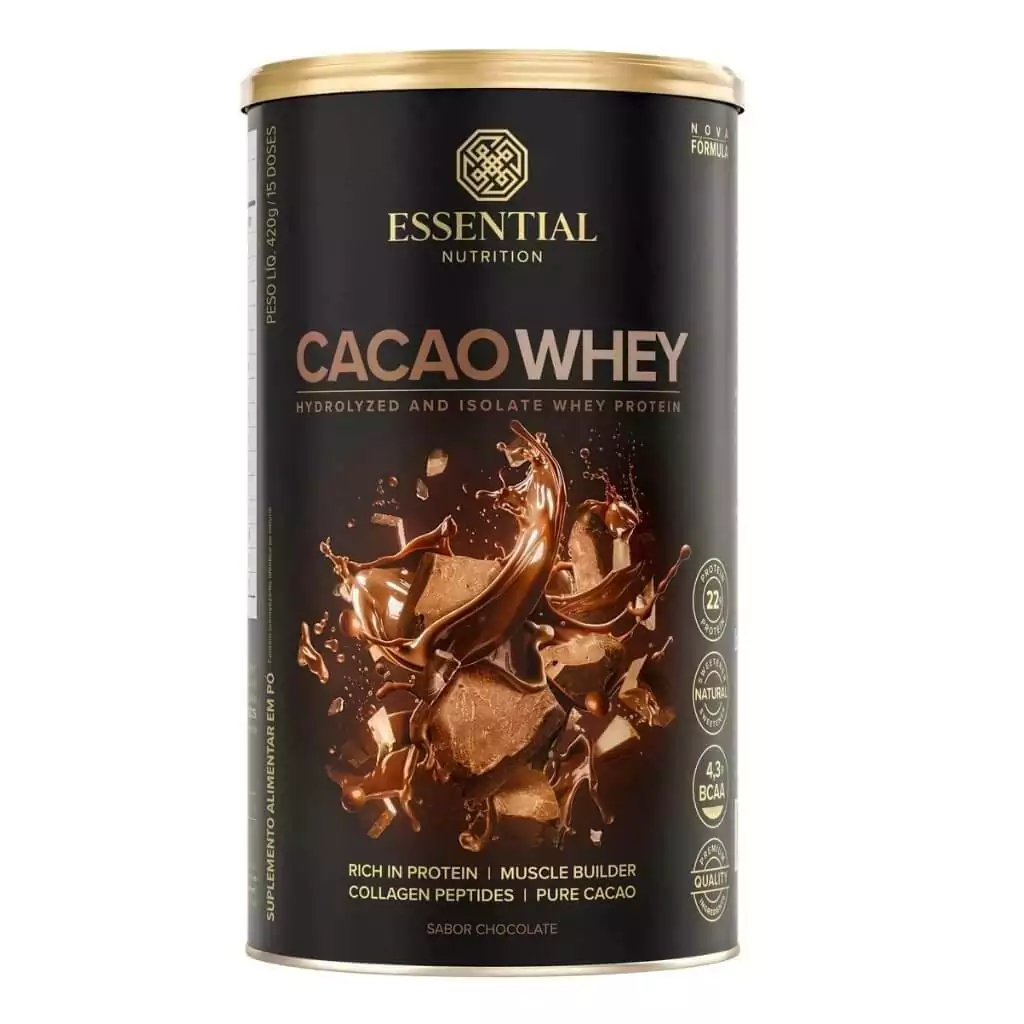 Você acaba de encontrar o Cacao Whey 450g da Essential Nutrition, a escolha perfeita para quem busca elevar a qualidade da sua suplementação!