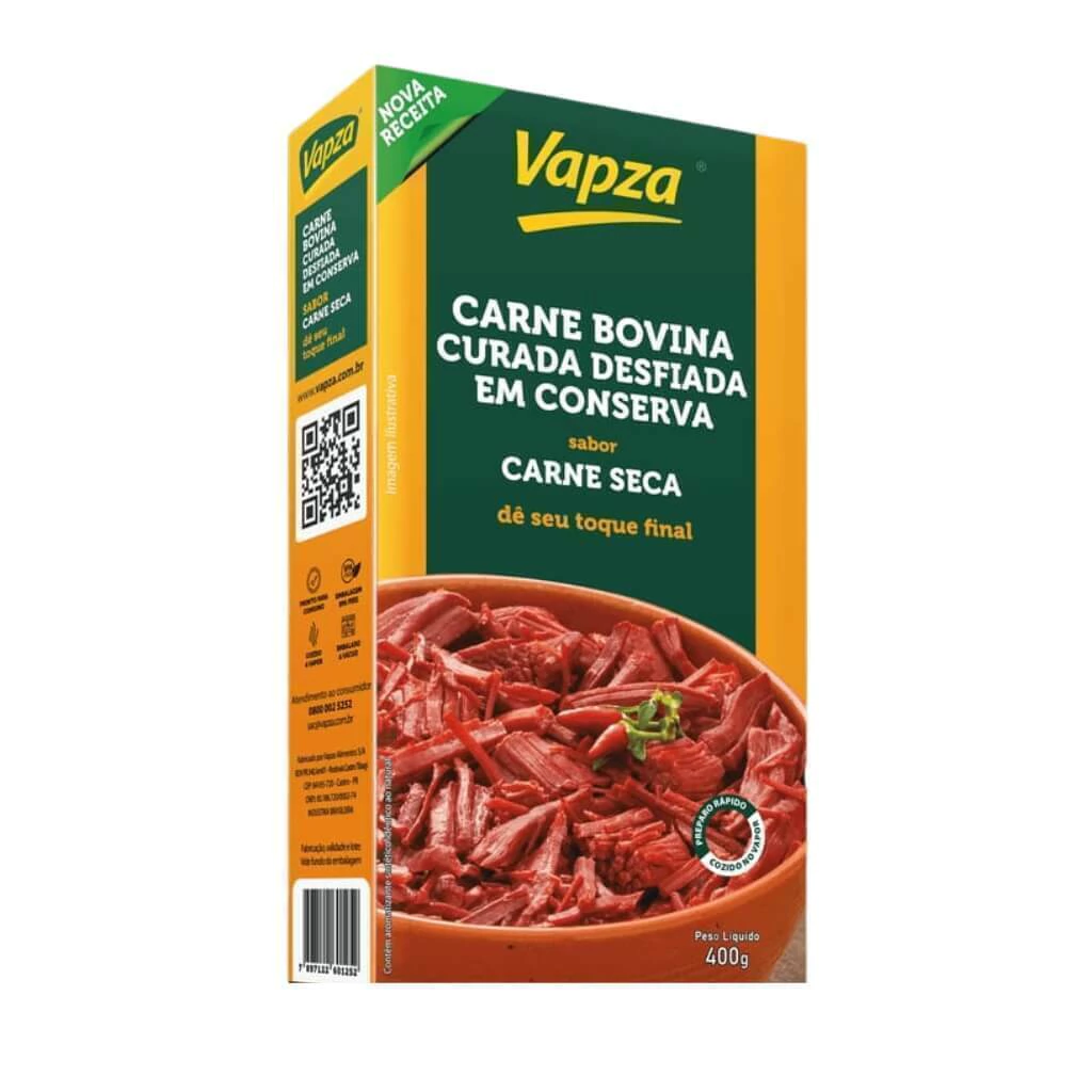 Experimente a Carne Bovina Curada Desfiada Sabor Carne Seca Vapza 400g e transforme suas refeições em momentos práticos e deliciosos. Não perca tempo, adicione ao seu carrinho e descubra a versatilidade desse produto que vai facilitar seu dia a dia!