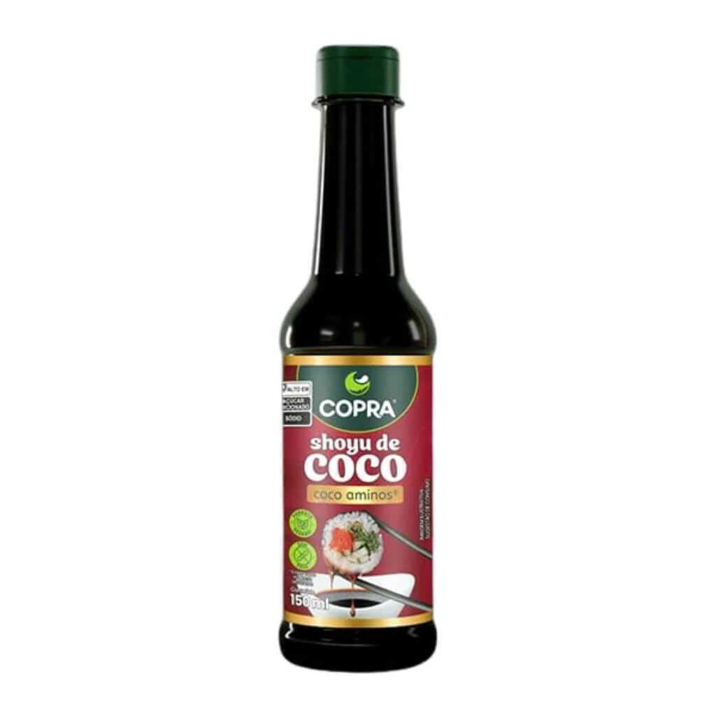 Adote essa opção saudável e sustentável na sua cozinha! Aproveite para incluir o Shoyu de Coco Copra 150ml na sua despensa e transforme suas refeições com um toque gourmet, livre de soja e cheio de sabor.
